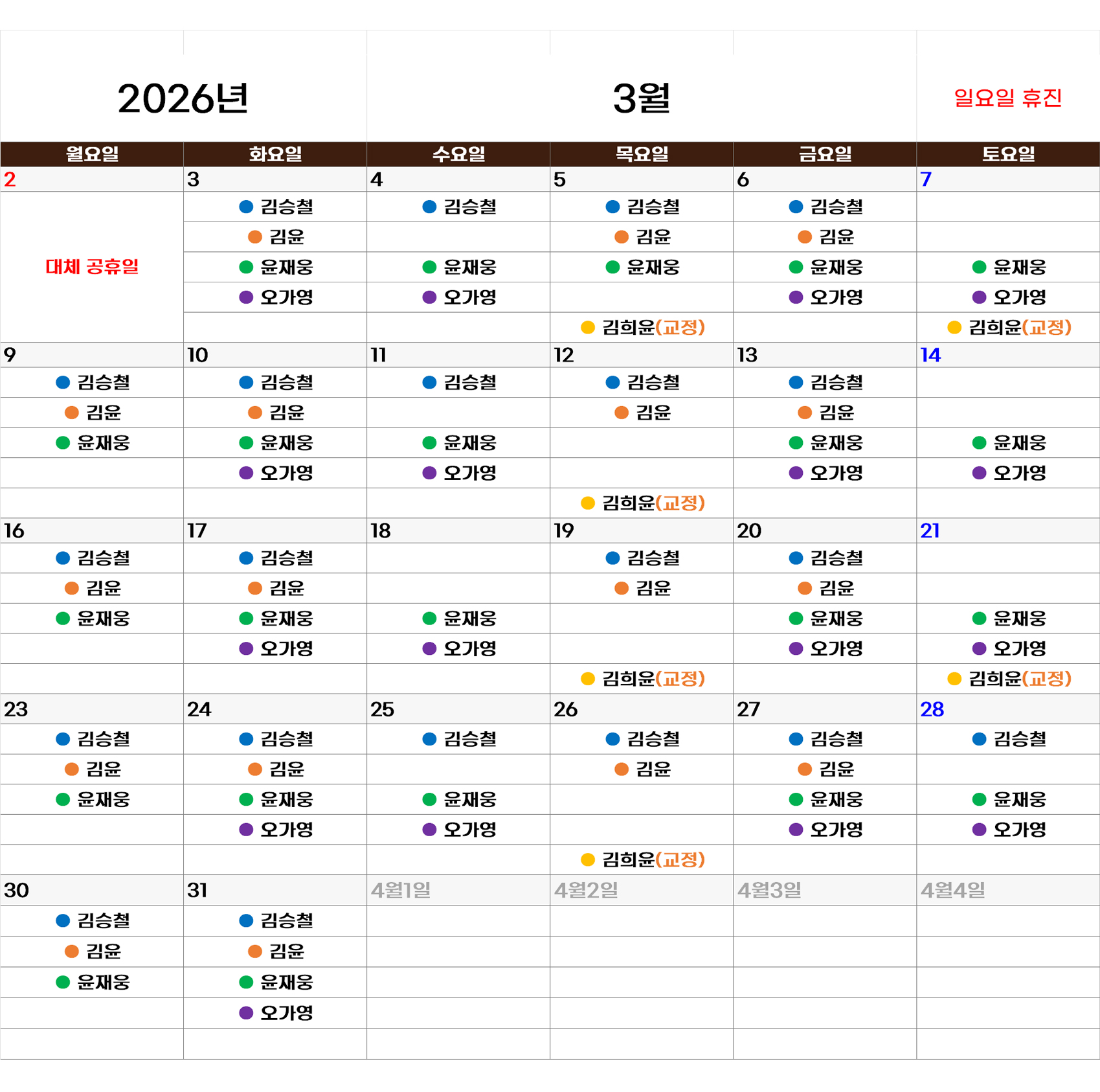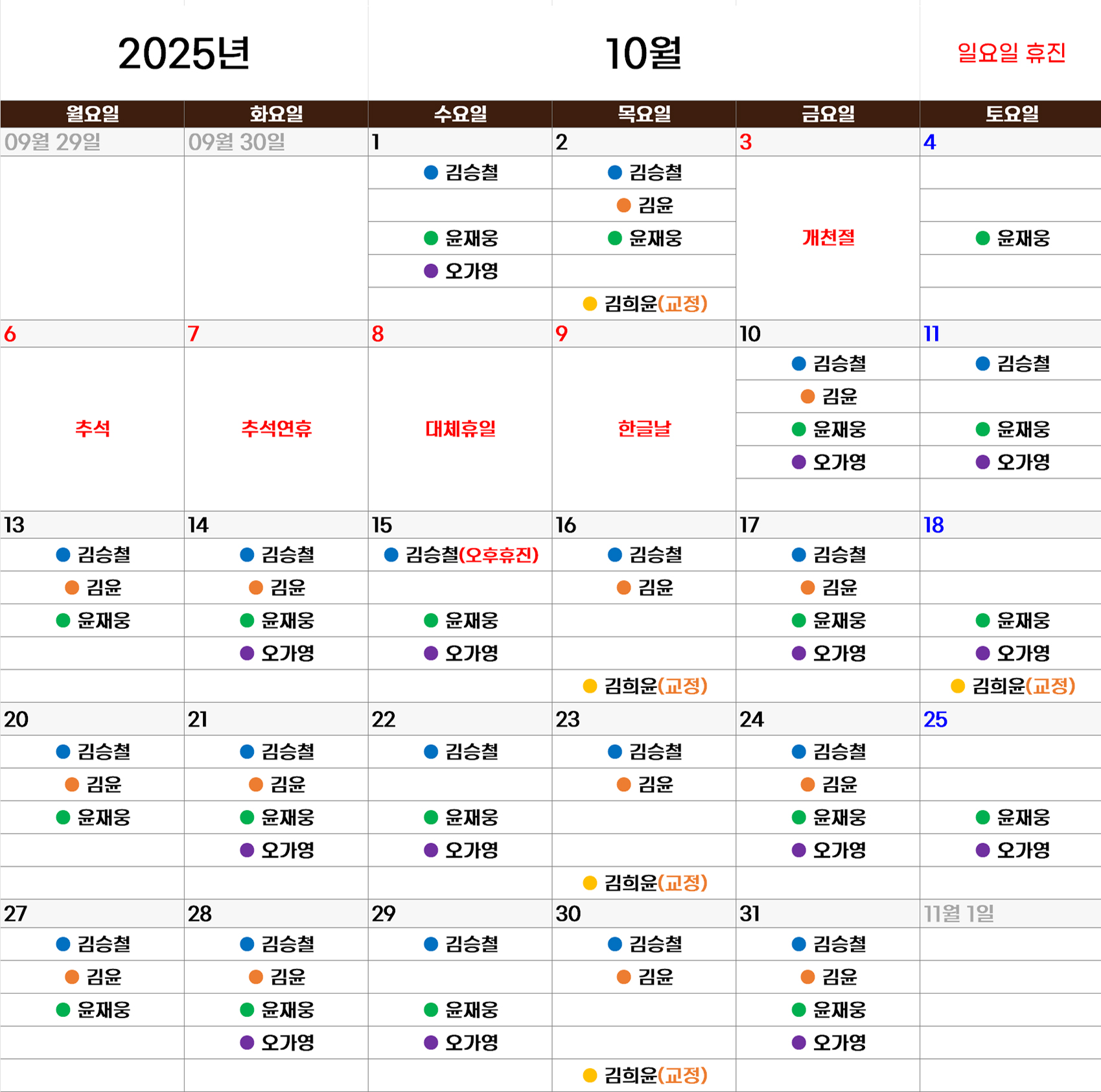 의료진별 일정